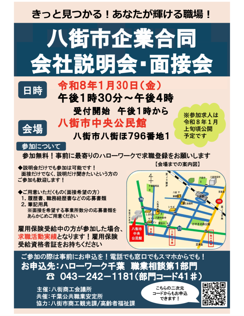 「八街市企業合同 会社説明会・面接会」に参加いたします。